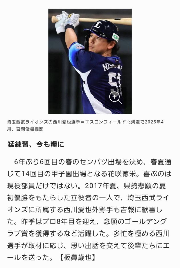 めざましテレビで西川愛也先輩(花咲徳栄高校3年)が紹介されました。