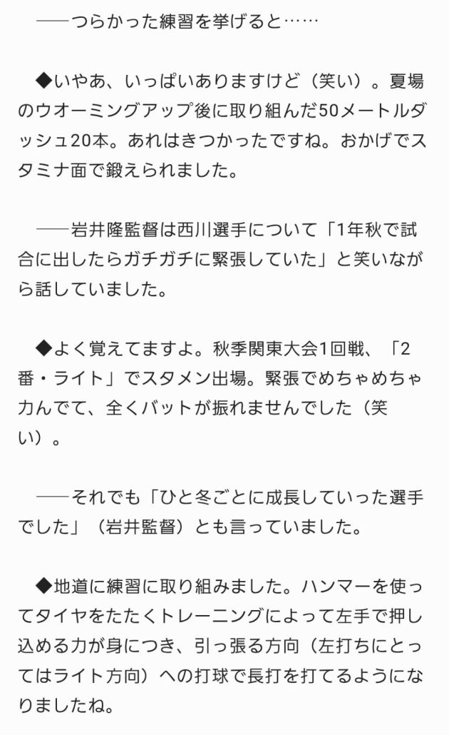 西川愛也先輩(花咲徳栄高校・背番号7番)