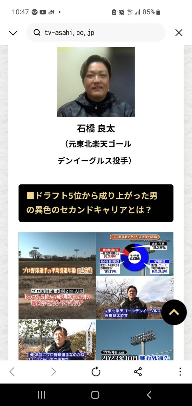 に長曽根OBの石橋良太先輩(元楽天ゴールデンイーグルス28)が出演📺️
