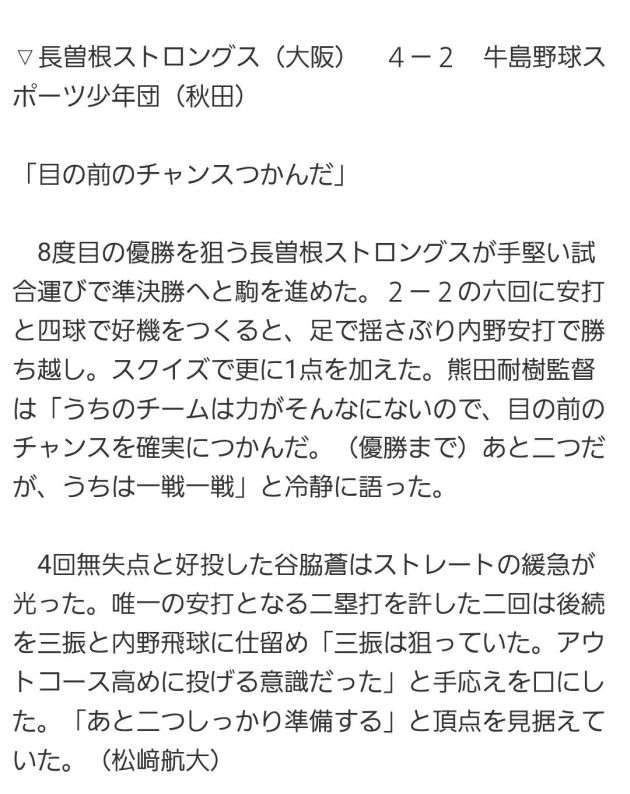 VS堤スターズスポーツ少年団(愛知県) 7 - 5で勝利😄