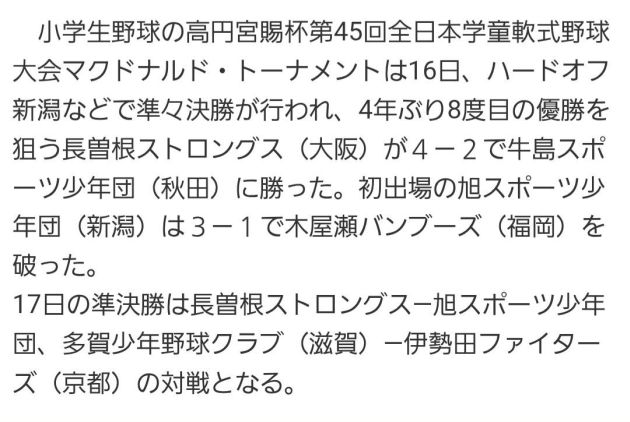 スポーツ少年団 全国大会準決勝