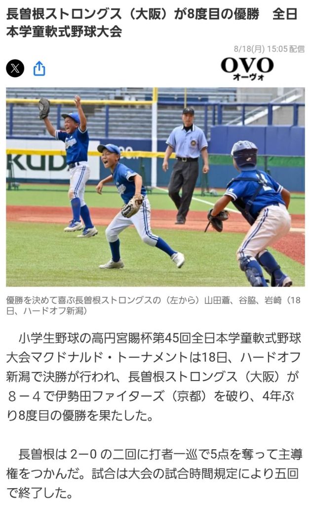 スポニチ杯争奪大阪府学童2部軟式野球大会 優勝🏆️