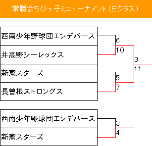 | 常勝会リーグ戦 緑ヶ丘グリーンヒルズ(MG)・美原ベアーズ(MB)・西南少年野球団エンデバーズ(SE) 長曽根ストロングスD(NS-D)・長曽根ストロングスE(NS-E) |