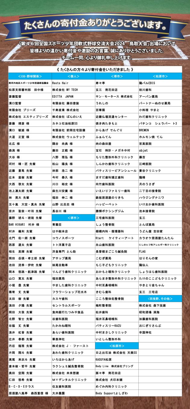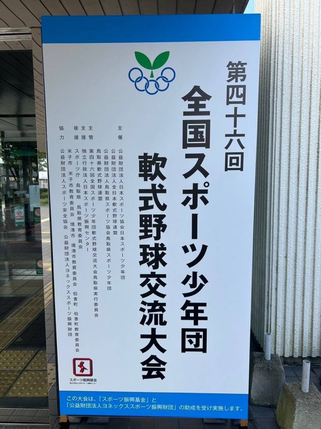 この度は、第46回スポーツ少年団軟式野球交流大会2024鳥取大会 出場にあたり、