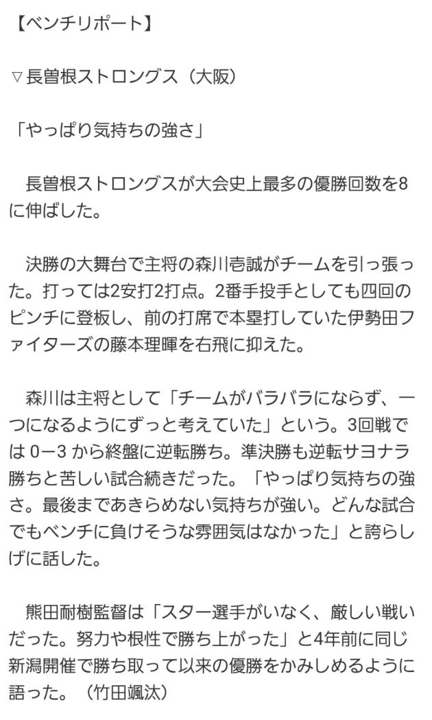 3回、4回にハル、ケンシンのタイムリーで試合を決め、5 - 1で勝利し優勝🥇