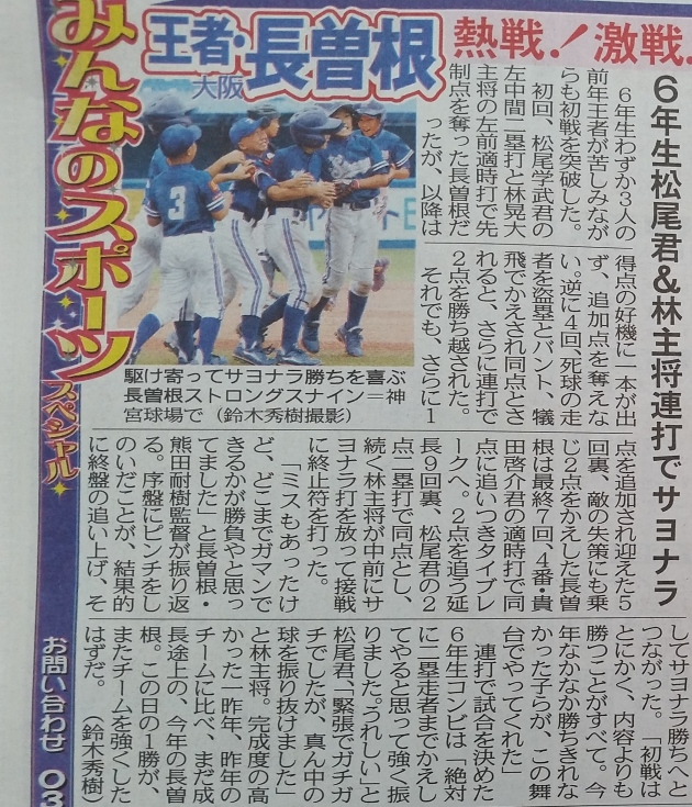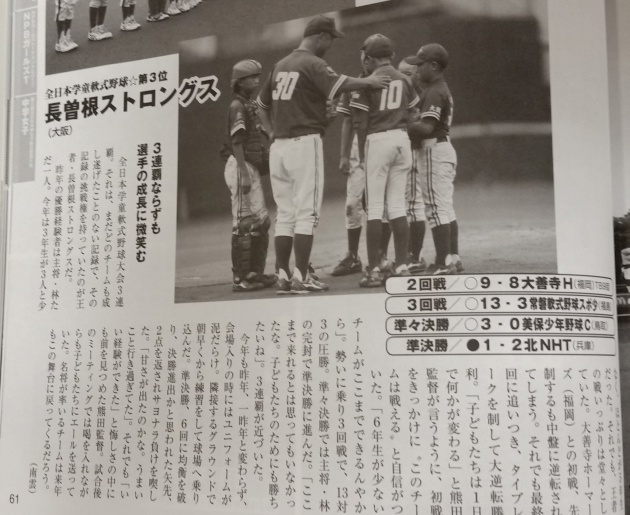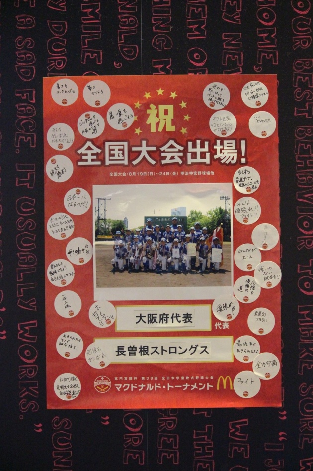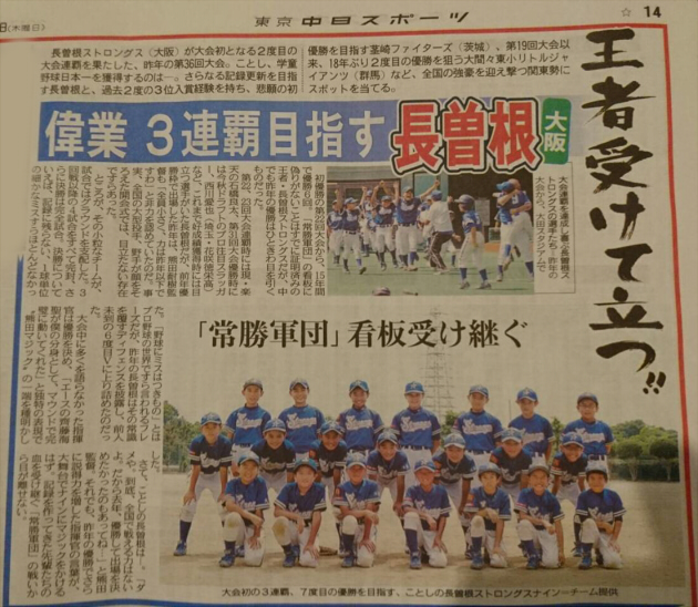 高円宮賜杯第38回全日本学童軟式野球大会マクドナルド・トーナメントの大阪府代表チームは「長曽根ストロング」(ナガソネ)です。