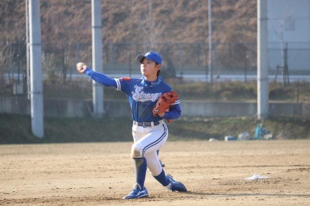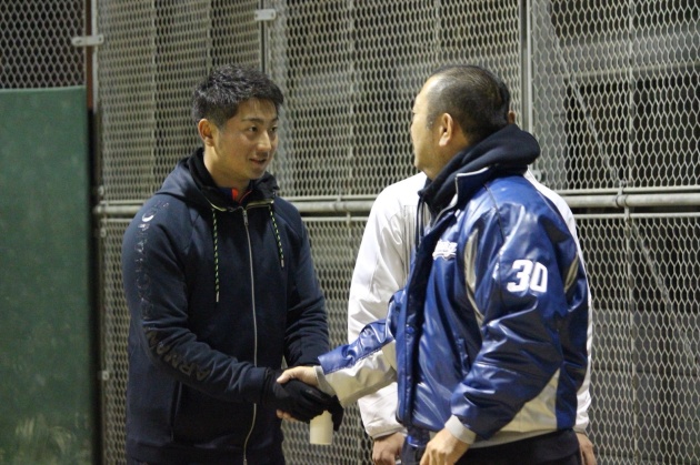 本年の練習最終日に長曽根ストロングスOBの石橋良太先輩(楽天イーグルス)、